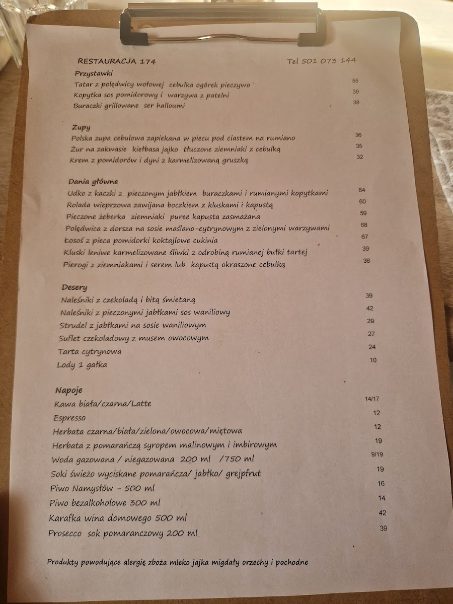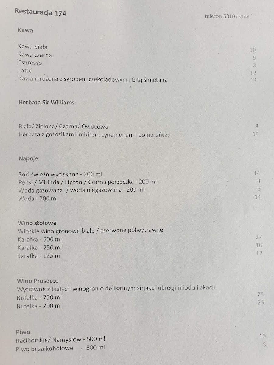 Drinks range from traditional Polish piwo to delicate Prosecco, fitting well with the warm, inviting atmosphere that makes Restauracja 174 a comfortable place for both casual snacks and more substantial dinners with family or friends. The setting enhances the enjoyment of each dish, combining the charm of a homely farmhouse environment with attentive service to create a welcoming space to unwind.