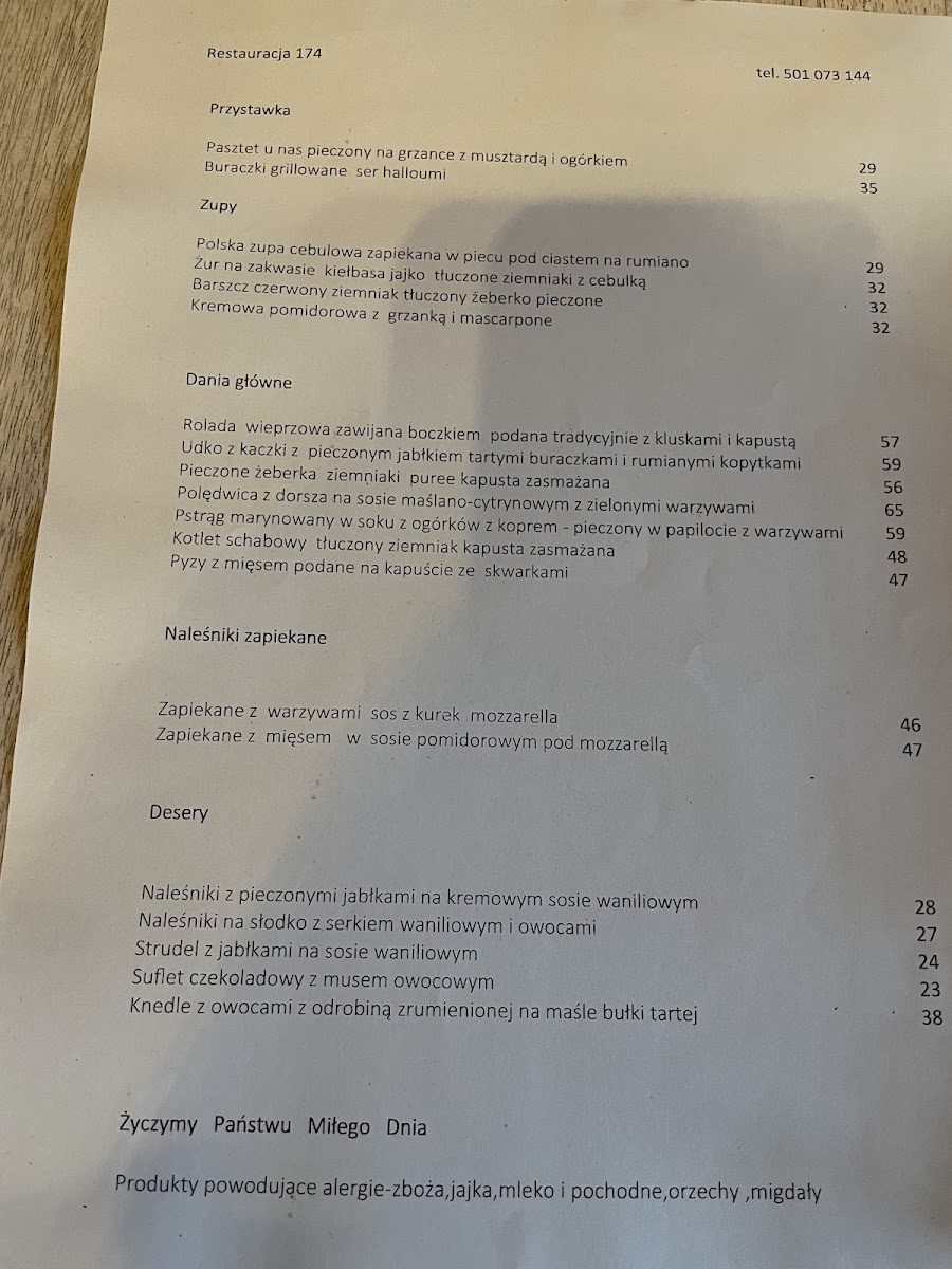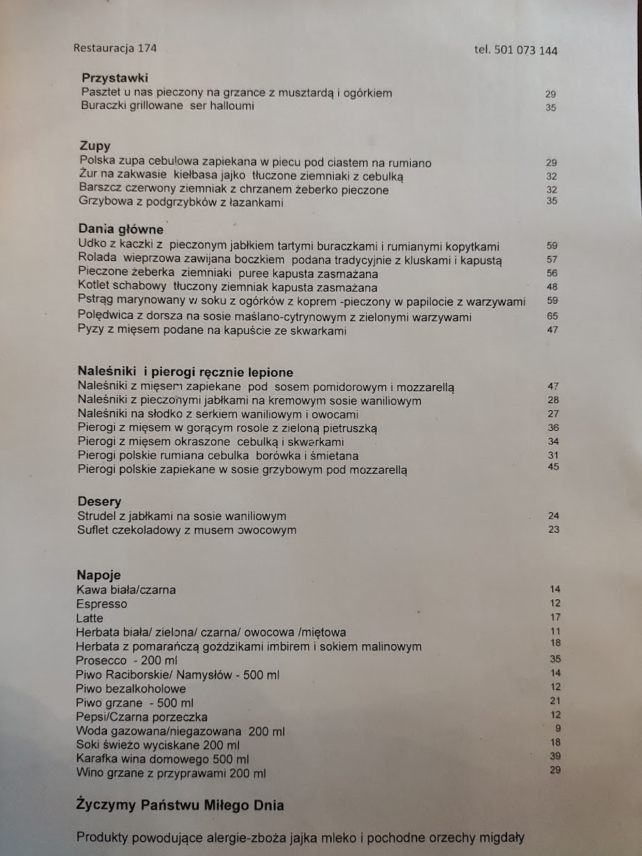 Restauracja 174 offers a thoughtfully crafted menu that balances traditional Polish cuisine with a modern touch, creating a comforting yet refined dining experience. The selection features hearty dishes that invite you to savor familiar flavors in a relaxed setting, whether you're settling in for a leisurely dinner or enjoying a cozy midday meal.